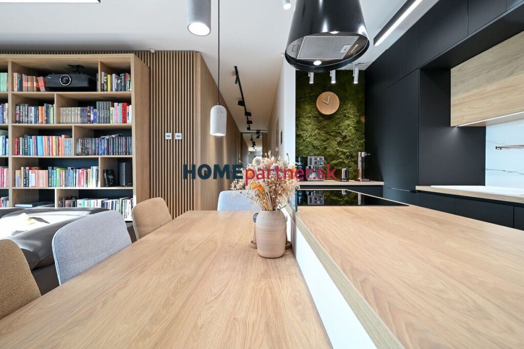 – kuchyňa s jedálňou vybavená komplet spotrebičmi (chladnička, mraznička, el. rúra, mikrovlnka, indukčná varná doska, digestor, umývačka riadu, elektrický ohrievač tanierov)
